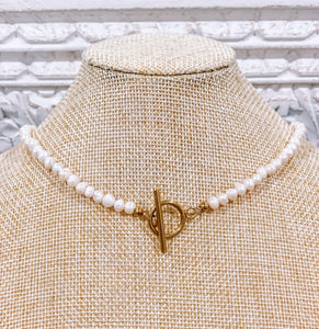 The iridescent luster of these white freshwater pearls creates the classic look of feminine elegance. An expertly crafted 18K yellow gold plated clasp keeps the necklace secure.